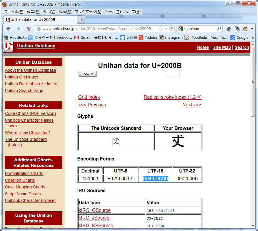 下の画面はUnihan Databaseで𠀋を引いてみたところだ。