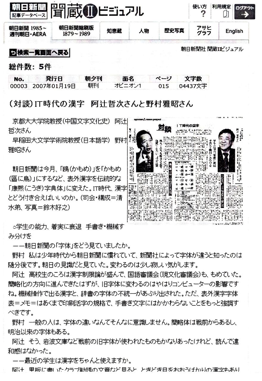 上の条件で5記事が検索された。当該の対談は3記事目なので選択する。
