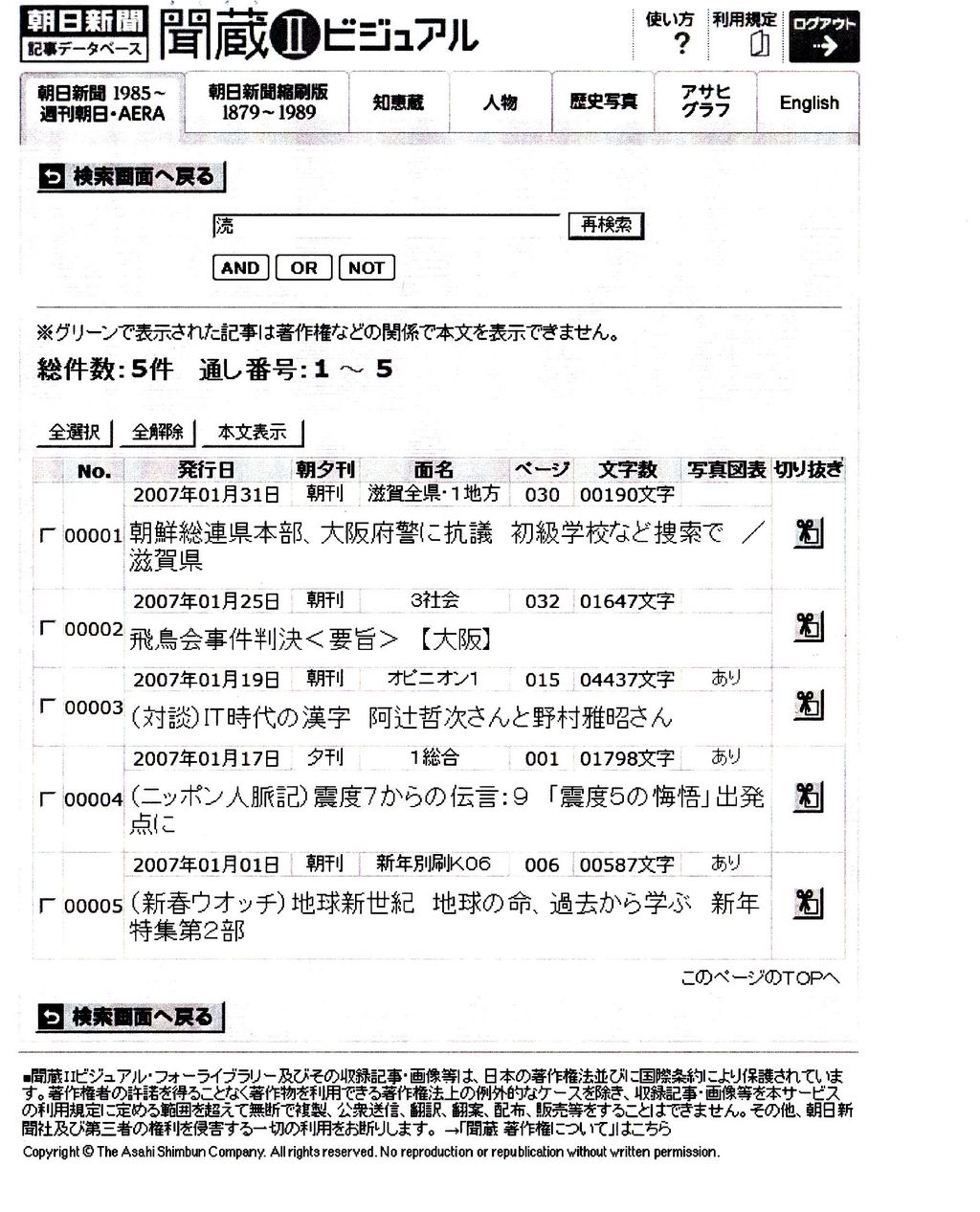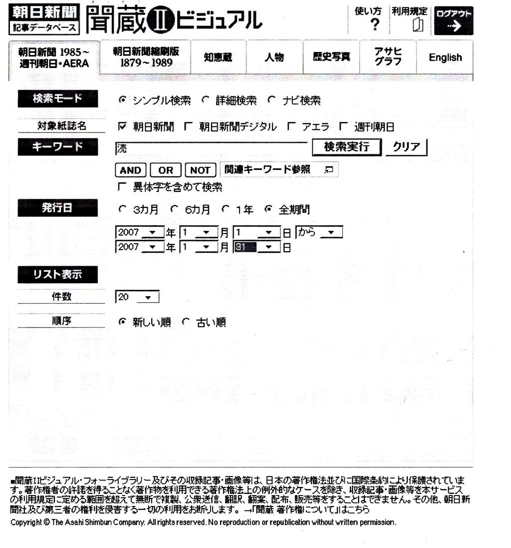 朝日新聞記事データベースで過去記事を検索する