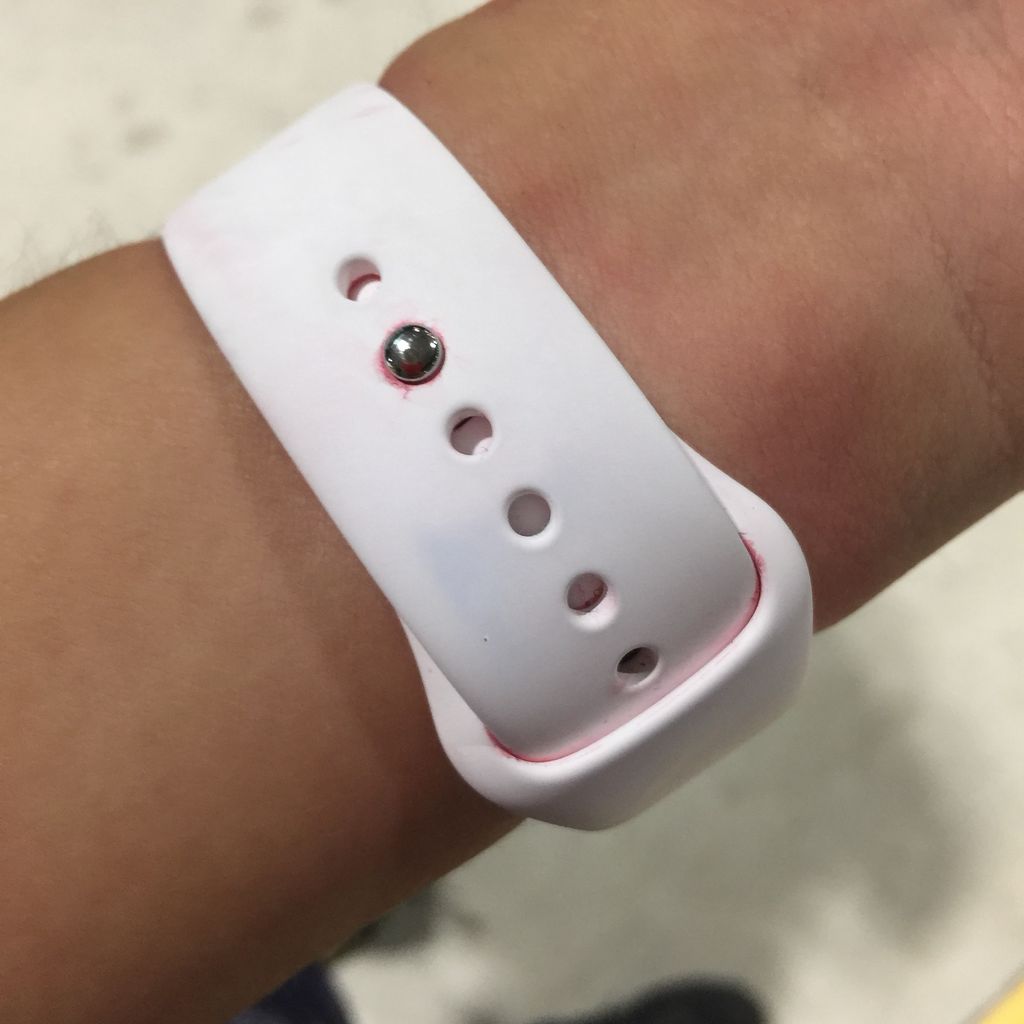 くつしたがグジョグジョになって、AppleWatchのホワイトのバンドがちょっとピンクになった。