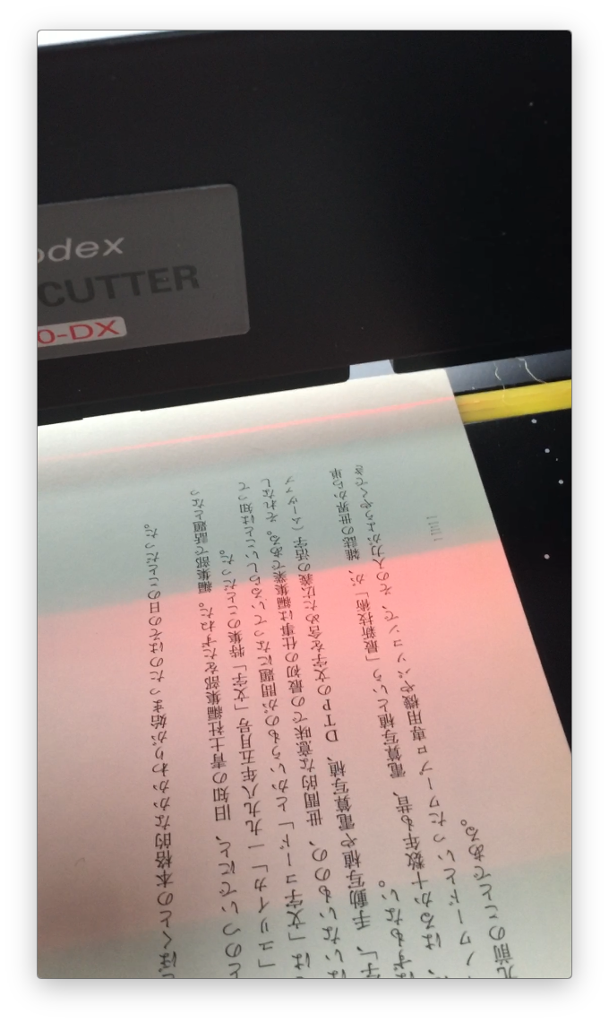 ぼくはスキャレンで大型断裁機を借りて、断裁が思ったよりも全然簡単なのにビックリしたが、200DXを使って、さらにカンタンなので二度ビックリした。